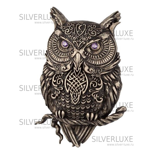 Серебро 875 пробы. Вставки - камень аметист. Выполняется индивидуальный заказ разной сложности. Есть возможность изготовления из других цветных металлов - нейзильбер, бронза и даже золото.