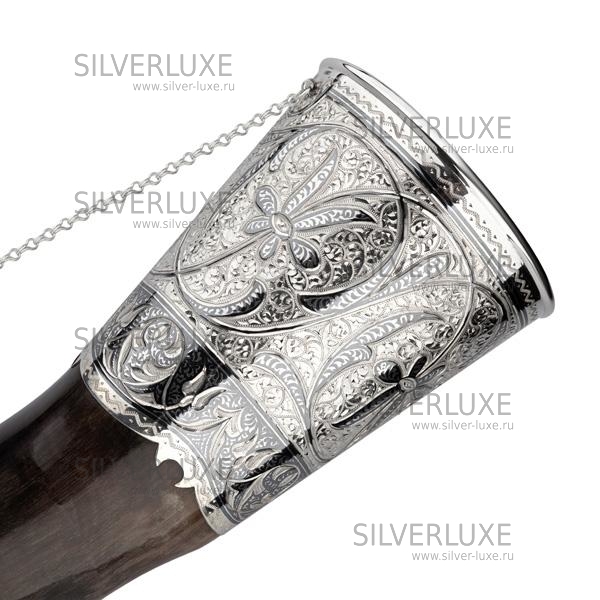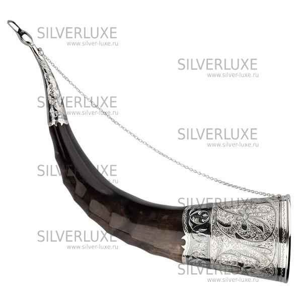 Рог тура серебряный, с питьевой чашей на 280 мл артикул: 1304