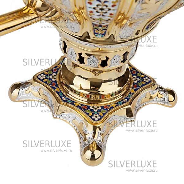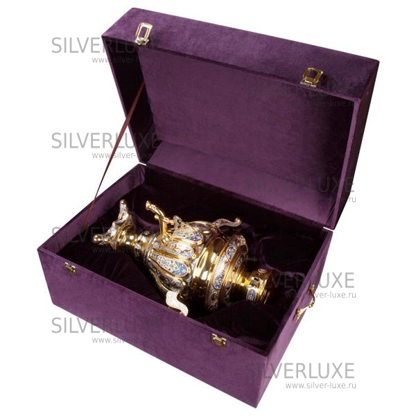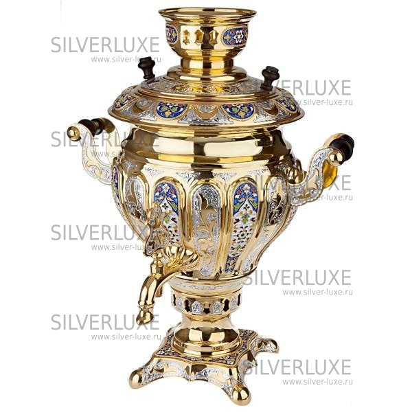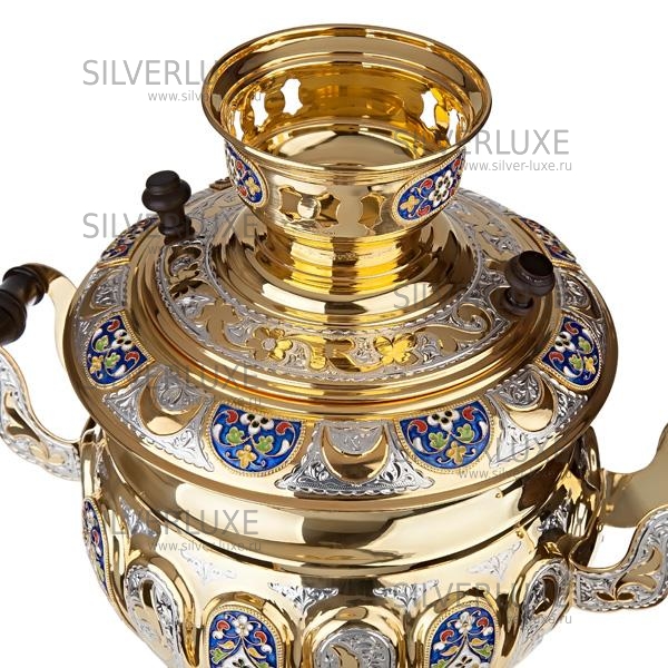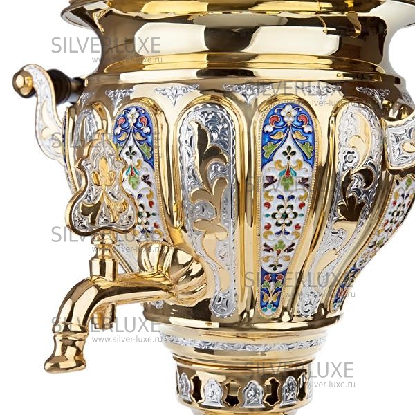 Серебро 875 пробы. Покрыт золотом 999 пробы. Самовар электрический, выполнен с горячей эмалью! Гарантия высшего качества от фирменного магазина!