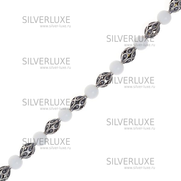 Бусы серебряные с белым агатом артикул: 8362/8