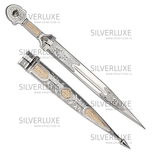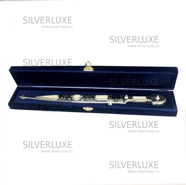 Серебро 875 пробы. Клинок - кизлярская сталь. Вставки - слоновая кость.