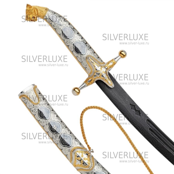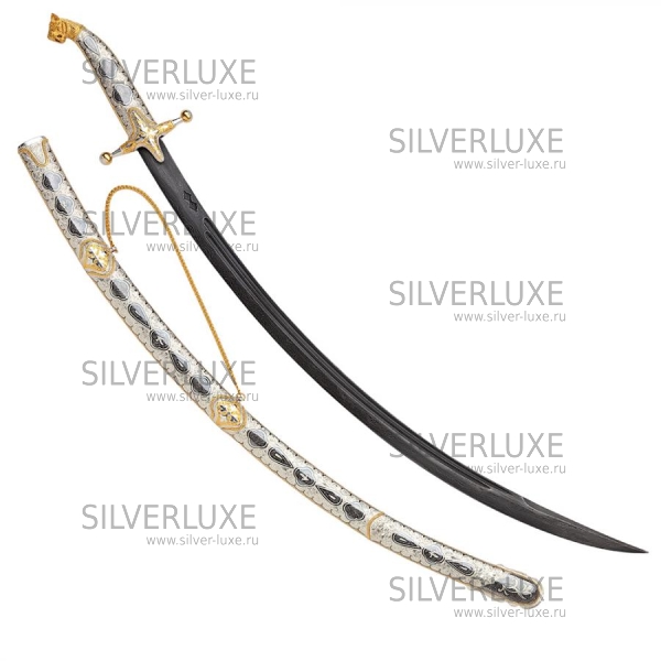 Серебро 875 пробы. Средний вес серебра в изделии 300 гр. Клинок - дамасская сталь! Гарантия высшего качества от фирменного магазина!