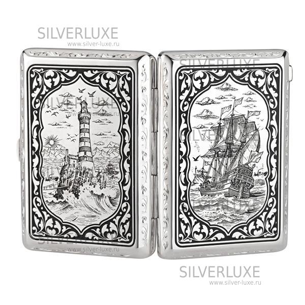 Серебро 875 пробы. Портсигар на 8 сигарет. Внутренняя часть обработана бархатом.