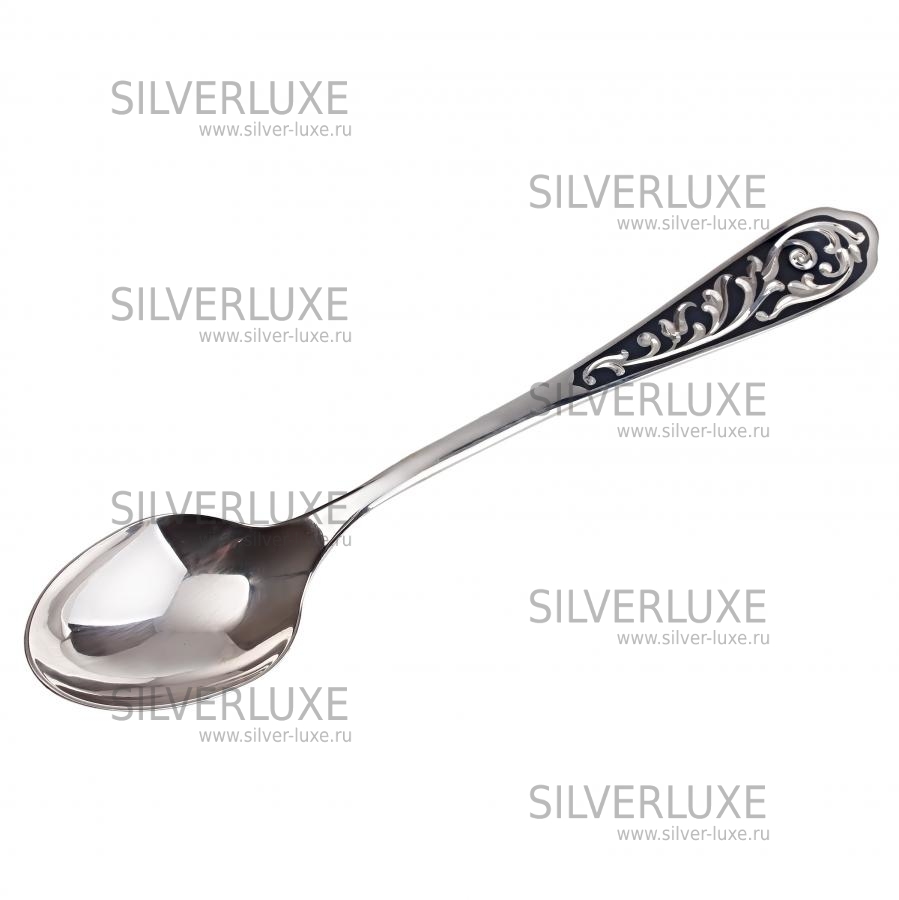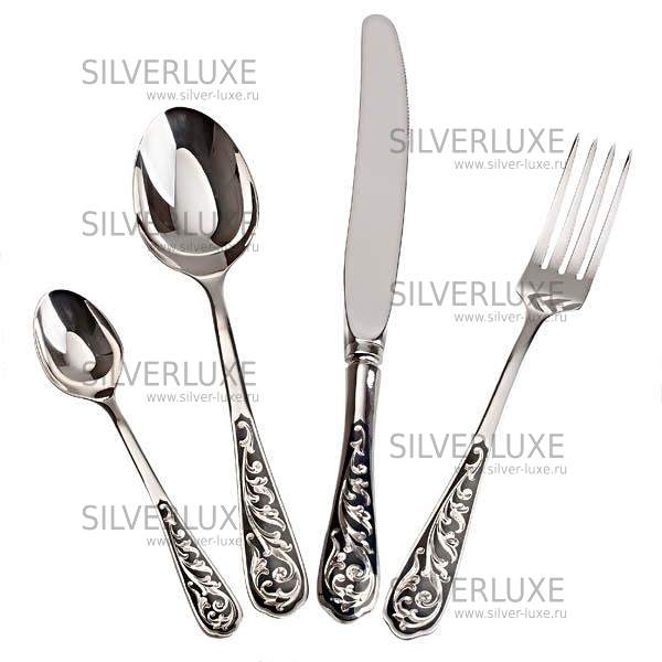 Серебро 925 пробы. Фирменный столовый набор компании "Кубачинское серебро", с чернением. В набор входят: ложки столовые 6 шт, ложки чайные 6 шт,вилки столовые 6 шт , ножи столовые 6 шт. Клинок ножа - нержавеющая сталь. Роскошный деревянный футляр из ясеня!
