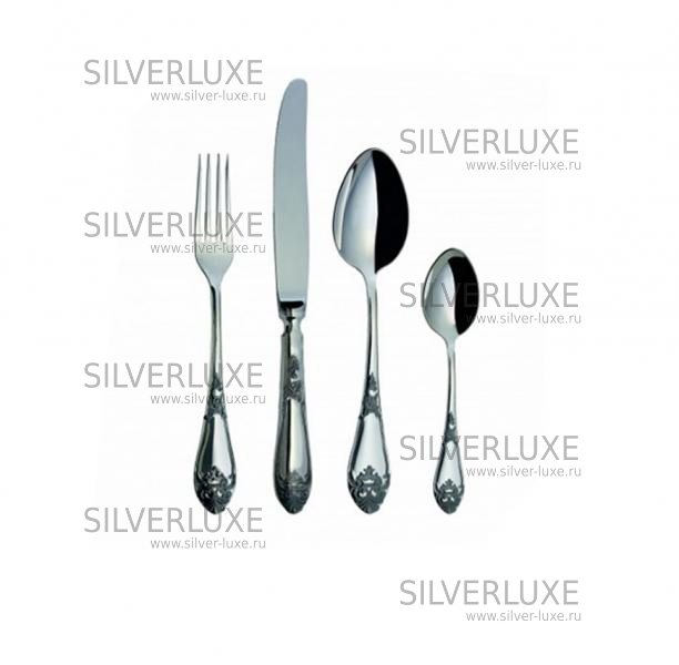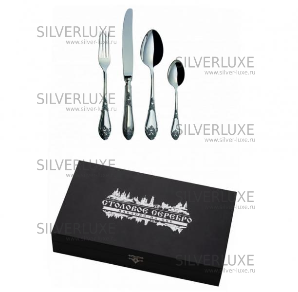 Серебро 925 пробы. ПАО "Павловский завод им.Кирова". В набор входят: ложка чайная - 1 шт., ложка столовая – 1 шт., вилка столовая – 1 шт., нож столовый – 1 шт.