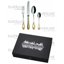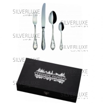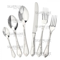 Серебро 925 пробы. В набор входят: ложки столовые 6 шт, ложки чайные 6 шт,вилки столовые 6 шт , ножи столовые 6 шт.Гарантия высшего качества от фирменного магазина!