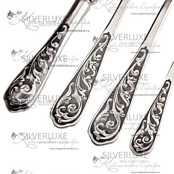Подарок из серебра упакован в красивый футляр. Цена столового серебряного набора одна из самых низких, поскольку интернет-магазин продает продукцию кубачинских мастеров без наценки, то есть стоимость будет от производителя. Доставка товара осуществляется по Москве, Санкт-Петербургу и всей России, возможна оплата при получении товара.
