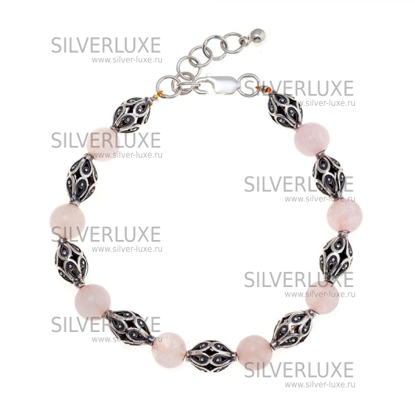 Браслет-бусы из серебра с розовым кварцем артикул: 8363/3