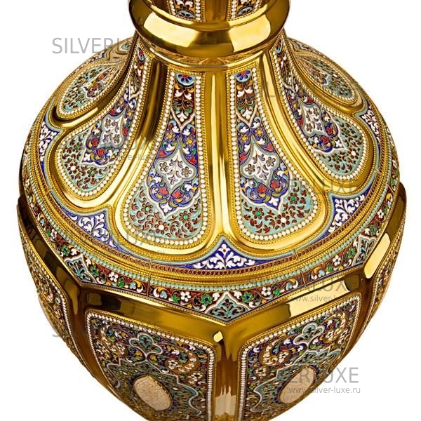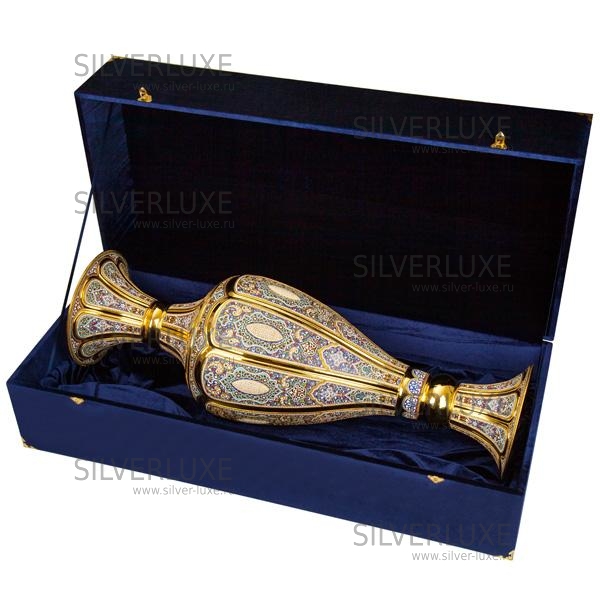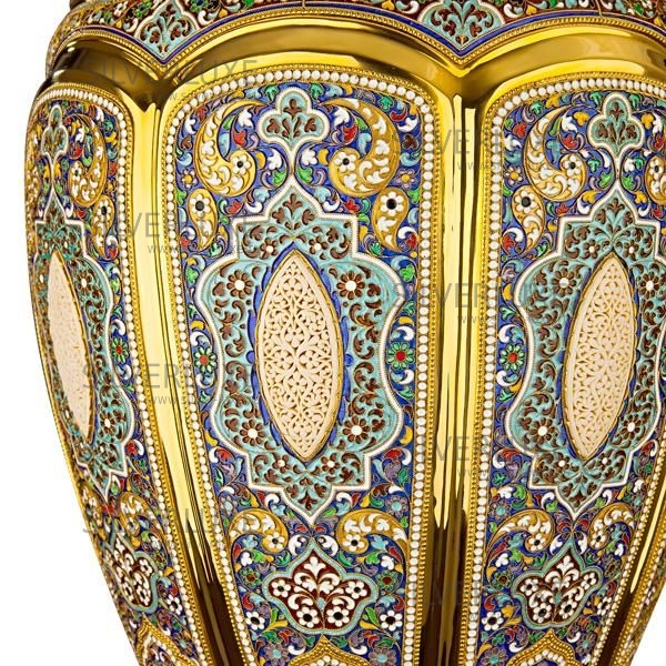 Серебро 875 пробы. Покрыта золотом 999 пробы. Вставки - горячая эмаль, слоновая кость. Ручная работа от кубачинских ювелиров! Добавит роскоши в ваш дом!