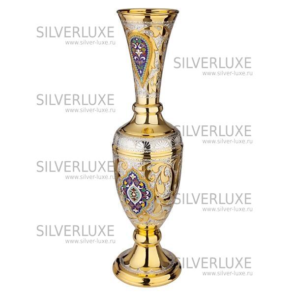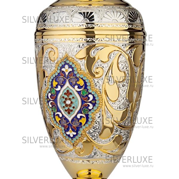 Серебро 875 пробы. Покрыта золотом 999 пробы. Вставка - горячая эмаль!