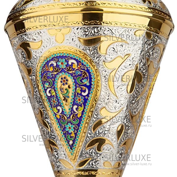 Серебро 875 пробы. С позолотой 999 пробы и горячей эмалью.