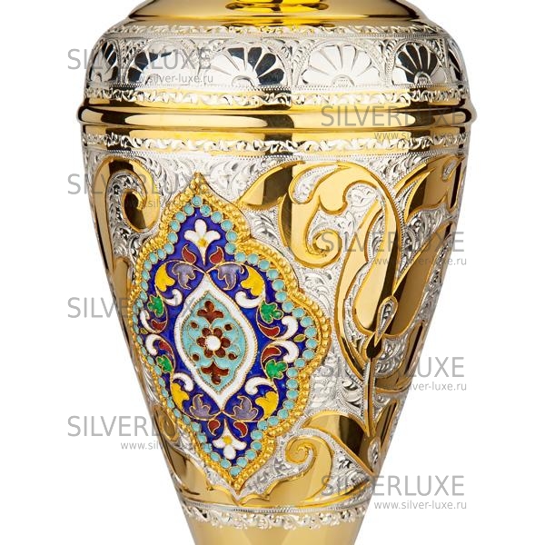 Серебро 875 пробы. Покрыта золотом 999 пробы. Вставка - горячая эмаль!